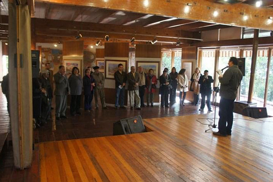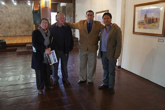 Felipe Coaquira presenta una interesante muestra de acuarelas, de una transparencia muy particular donde sus pinceladas recrean escenarios de tradición, paisajes con gran atmósfera y profundidad donde la disposición e intimidad creativa de la riqueza cromática cumple un rol fundamental.
